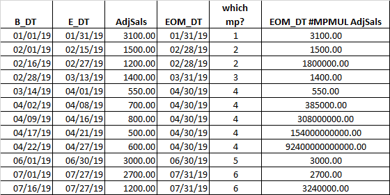 EOM_dt #MPMMUL AdjSals ; successively multiple values on a monthly basis