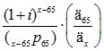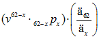 v = 1/(1 + i), where i is the interest rate applicable before age 62.